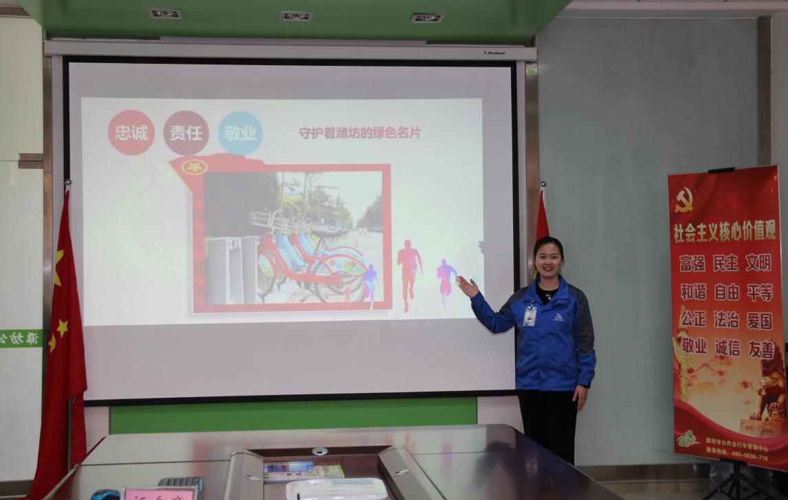 為更好地培育和踐行社會(huì)主義核心價(jià)值觀,弘揚(yáng)愛崗敬業(yè)精神,營(yíng)造整體積極向上的良好工作氛圍,4月11日下午,公共自行車管理中心同公共自行車運(yùn)營(yíng)公司開展了主題為“激揚(yáng)青春智慧 爭(zhēng)當(dāng)崗位先鋒”的演講比賽。組織本次活動(dòng)著力于挖掘年輕業(yè)務(wù)骨干,優(yōu)化公共自行車運(yùn)營(yíng)管理隊(duì)伍建設(shè),進(jìn)一步提高工作人員各方面素質(zhì),更好的提升公共自行車服務(wù)水平,為市民提供更好地服務(wù)。