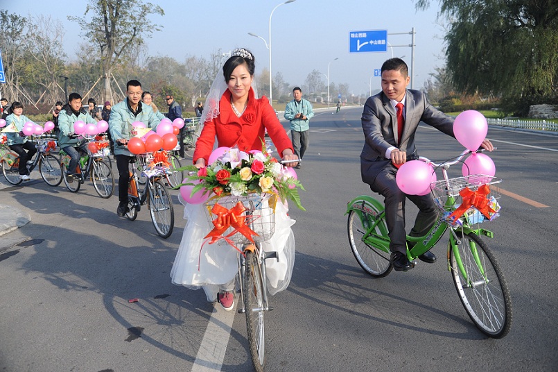 低碳環(huán)保的公共自行車為婚車
