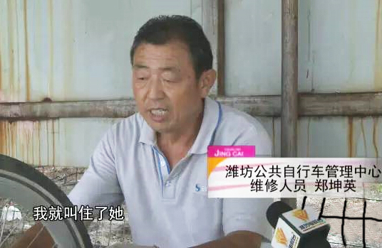 近日,有熱心觀眾反映,一名熱心的師傅在路邊幫助修公共自行車,據(jù)了解是公共自行車管理處的工作人員。根據(jù)這位熱心市民的描述,我們?cè)跒H坊公共自行車管理中心找到了正在工作的維修師傅鄭坤英。