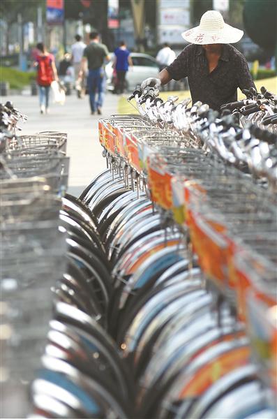 “南京市民的素質(zhì)是很高的,大家很支持這種綠色出行方式?!必?fù)責(zé)維修的季師傅說,不過,他也不無遺憾地告訴記者,少數(shù)市民不愛惜車輛,動作粗暴,導(dǎo)致自行車時常損壞。
