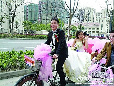 上一個雙休日,住在蘇州工業(yè)園區(qū)中海國際社區(qū)的網(wǎng)友“繆繆ssweetheart”因為一張婚禮圖片,而在微博上引來了“圍觀”,原因不僅是新郎新娘的婚車用上了三輪車,而且連送親的隊伍每人都騎上了一輛綠色的公共自行車。這場綠色、低碳、環(huán)保的婚禮不僅踐行了“綠色出行”的理念,同時他們這一創(chuàng)新的婚禮形式也成為朋友間的時尚美談。