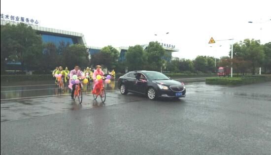 10月5日,一對新人選擇了一個新意十足的騎行婚禮,在我們泗陽可算是第一遭。踏上婚禮殿堂的一刻總是令人難忘,而作為主角的新人總是期望每一個細節(jié)都能與眾不同。新郎接到新娘后,兩位新人選擇共同騎著我們的小橙前往婚禮現(xiàn)場,就像平日里兩人一同騎行小橙出門一樣,只不過這一次他們即將共同騎向幸福的婚禮殿堂。新郎表示,婚禮一生只有一次,想給她一個與眾不同又凸顯個性的婚禮,于是想起了每天都騎行的小橙,更是要感謝小橙帶來的一段姻緣,與她結(jié)識并相親相愛。
